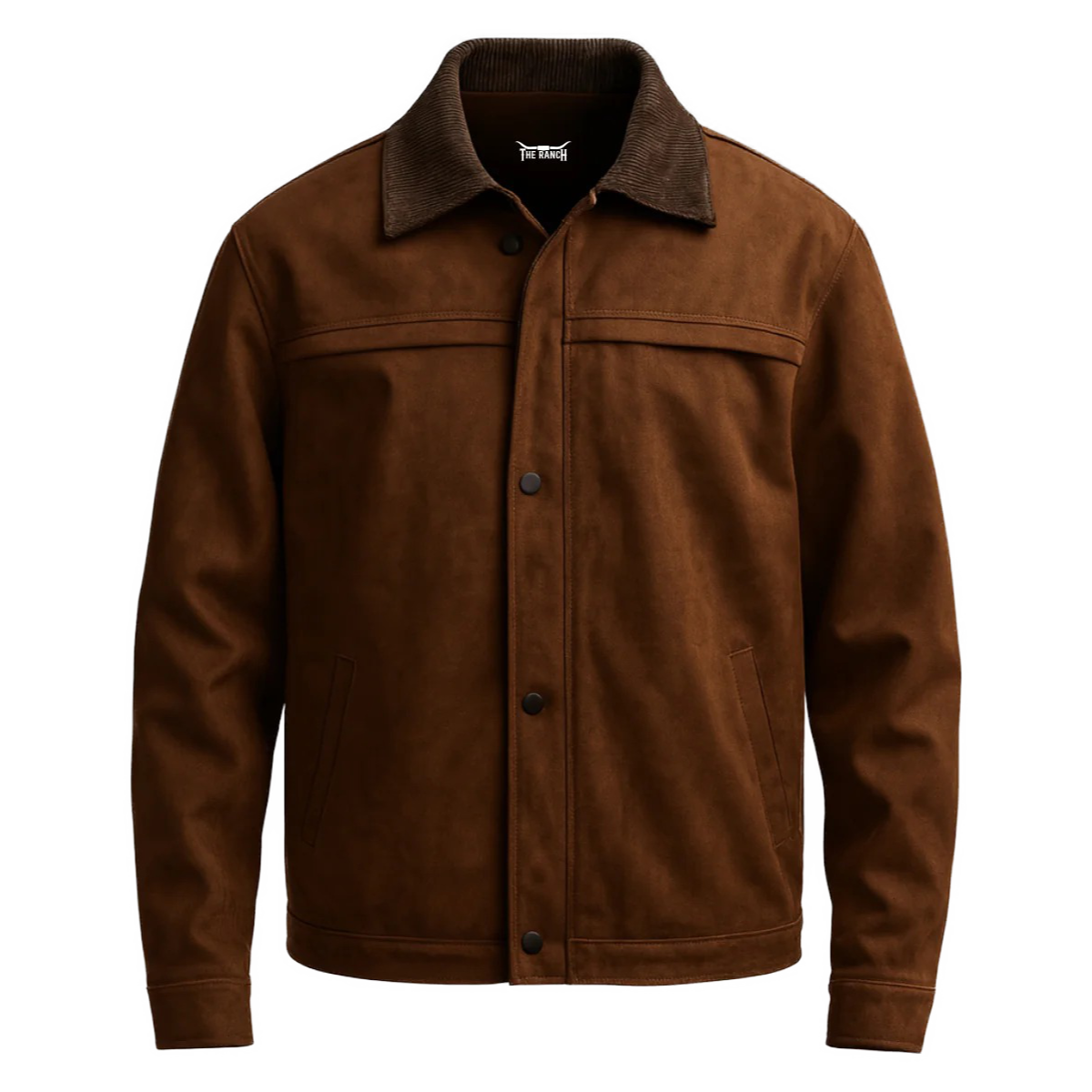 La Chaqueta Lariat está confeccionada en gamuza, con cuello en pana gruesa y forro interior en franela escocesa térmica que ofrece abrigo y suavidad.