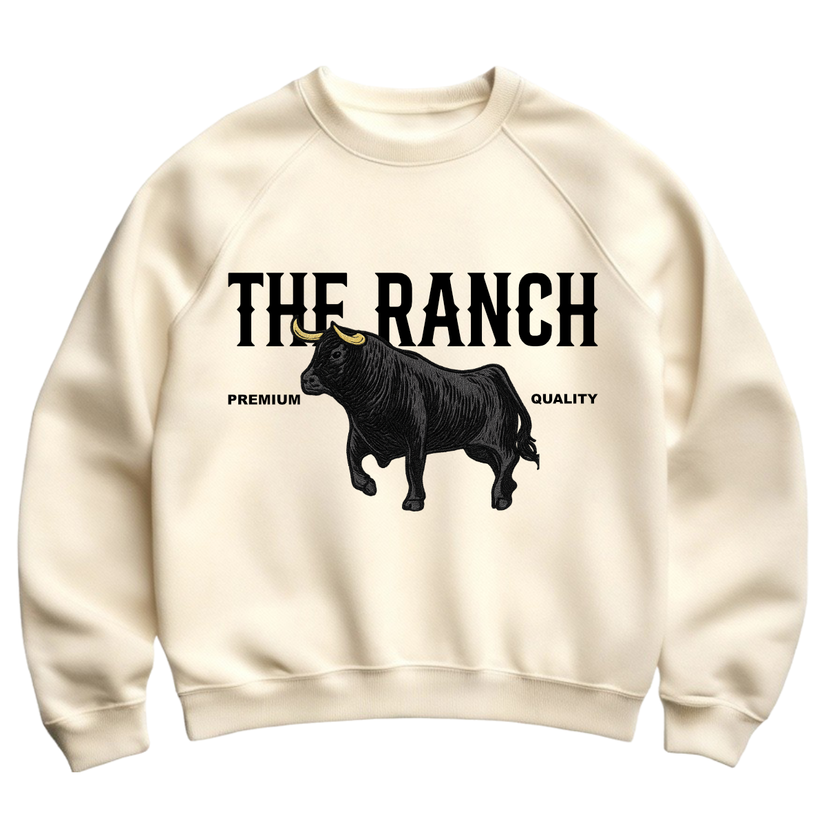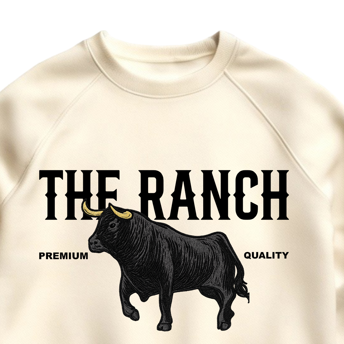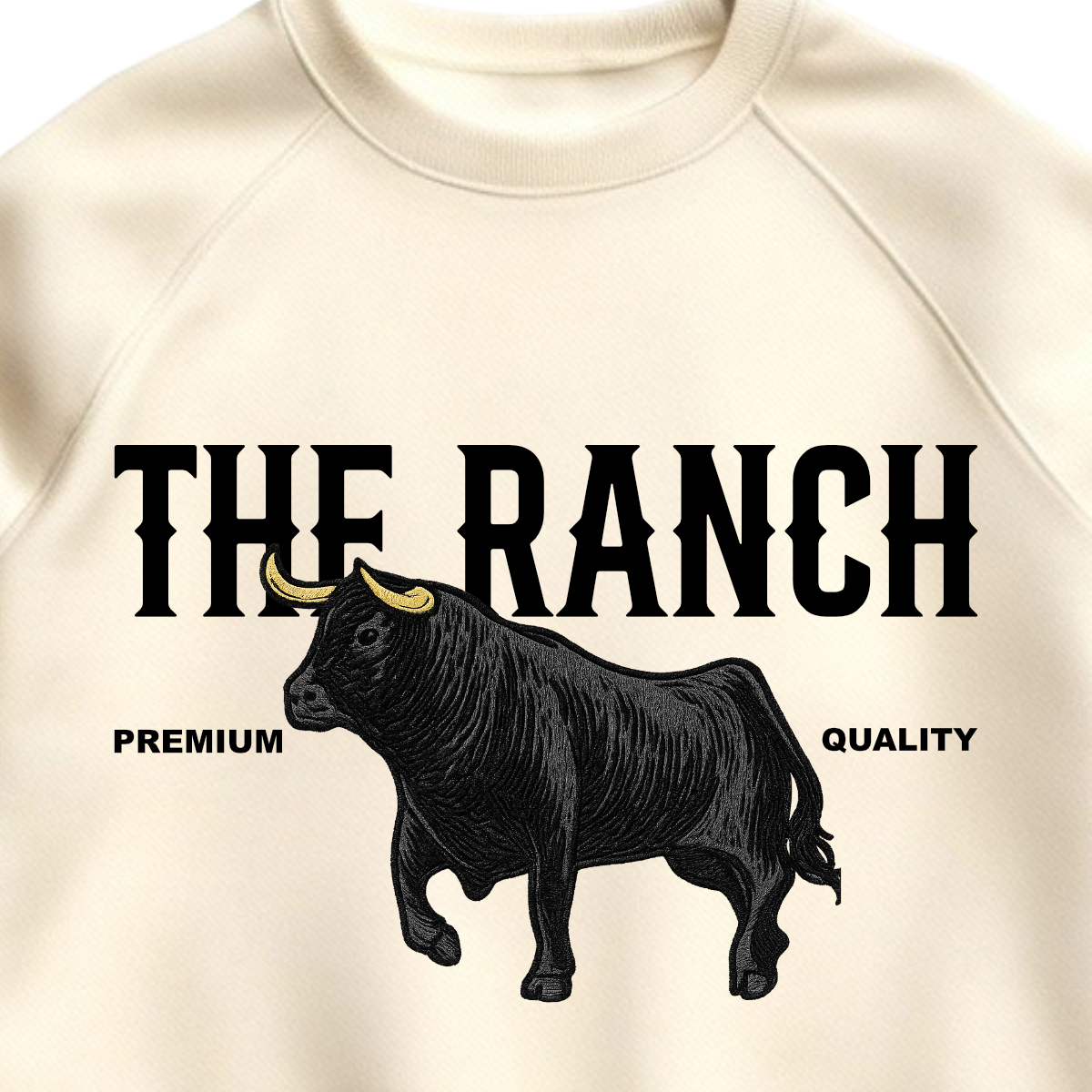 El protagonista es el toro bordado en alto detalle, con cuernos en contraste y textura tipo relieve que se siente al tacto y le da un aire de pieza coleccionable. El logo THE RANCH al frente refuerza el estilo western clásico, limpio y elegante, perfecto para combinar con jeans, botas o tenis.